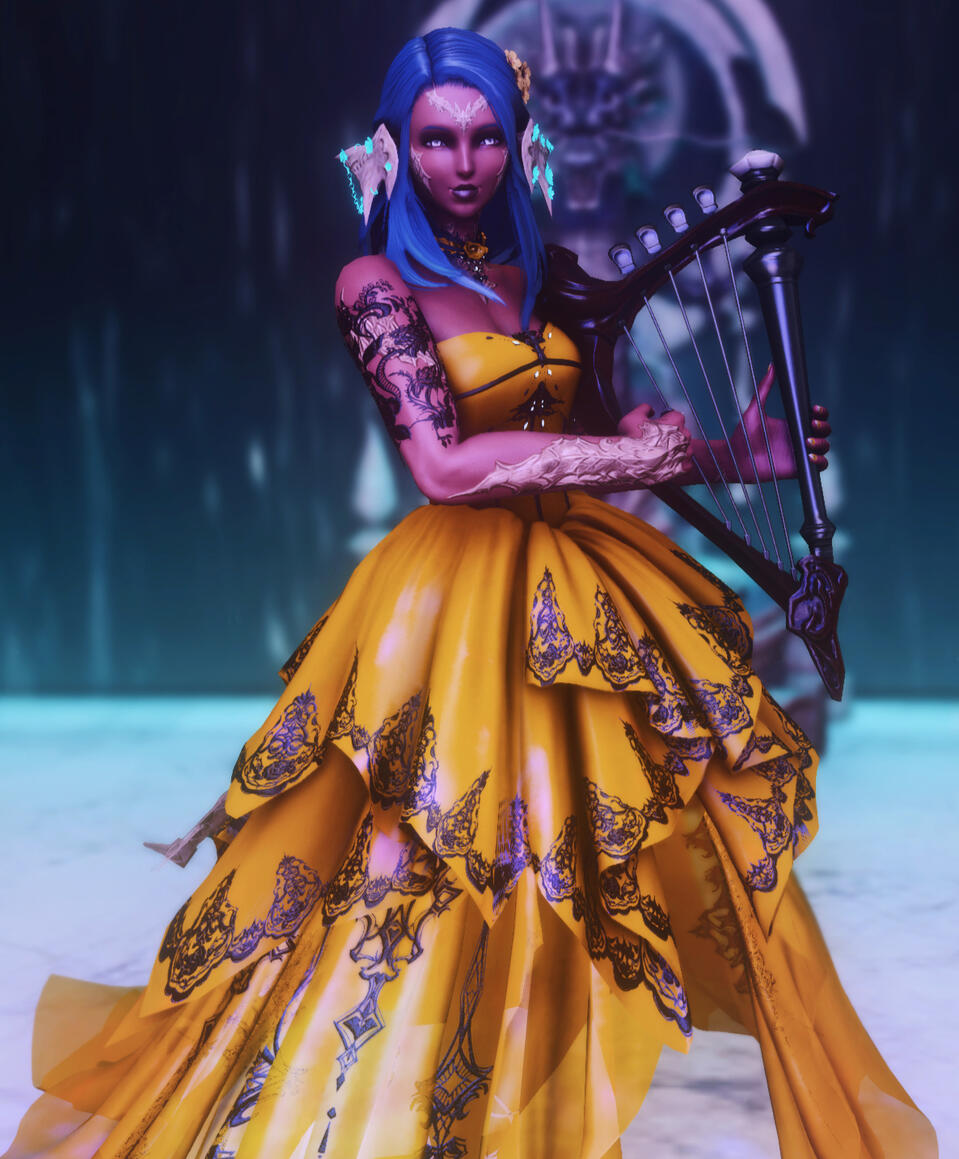 Meryt was a bard and performance coach who performed all over the star for private audiences as well as festivals such as Mogstock and Aethercon. She received her training as an acolyte at the Temple of Ramuh, but left later to pursue broader avenues of music. Incorporating everything from ancient hymns to the most recent popular tracks, she enjoyed playing a wide variety of music from many different cultures and styles. You might even have caught her quietly improvising on her harp in some unhurried corner of the realm, listening to the sounds of nature and weaving in a harmony or a counterpoint. Fond of a good sunset and fine fogweed, she sought to create lasting experiences for people through her music.