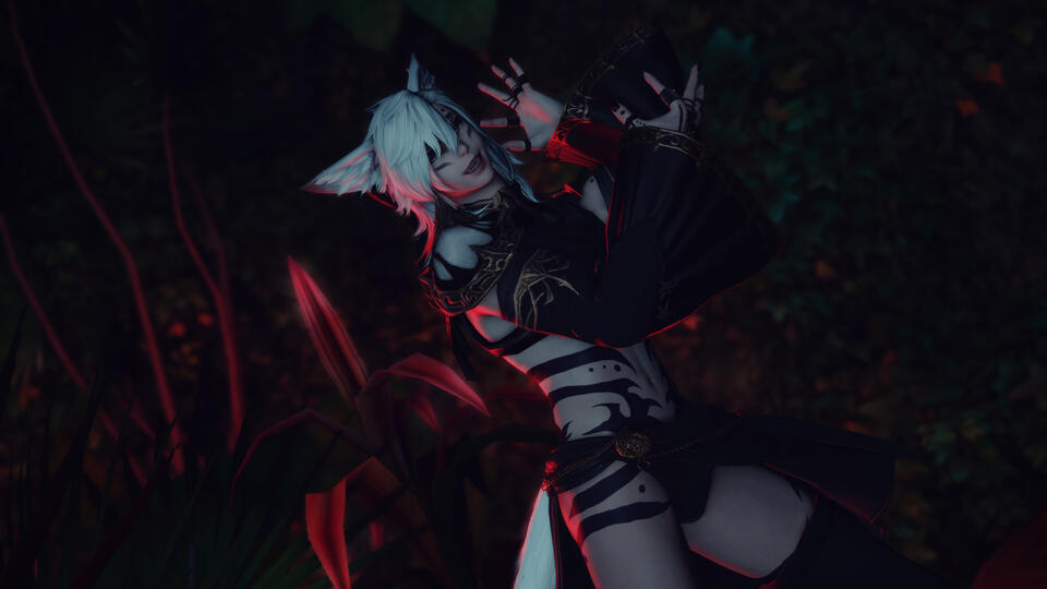 A traditional Keeper of the Moon, this tribal Miqo’te from the dark depths of the Black Shroud has returned to the halls of the Midnight Echoes to once more indulge in wicked pleasures. Half-feral and not entirely housebroken, Kiki’tan is also a cat of many talents. He can create poetry on the spot, dance, hunt for the choicest game, and entertain with stories for hours on end. Just be careful- he bites.