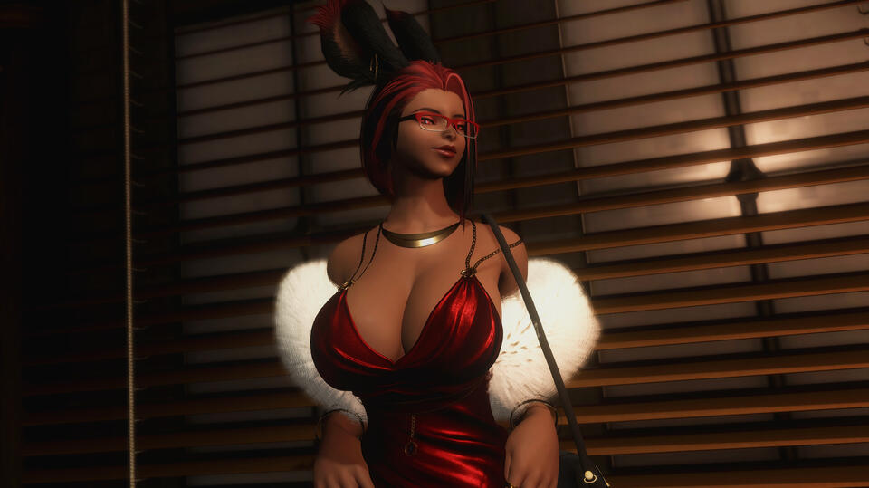 Coming from the distant past, Cynthia found herself loving the fun the nightlife offers for it’s guest. She owns a warehouse down at Limsa Lominsa, but yet… there’s always a few secrets she holds behind those scarlet frames of hers. Whether she’s listening in to spicy secrets or new business ventures, she’s always there to have fun!